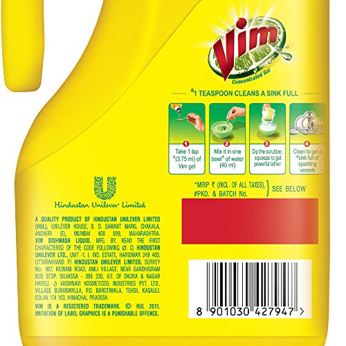 Vim Gel being enough to clean a full sink of dirty utensils. Its superior fragrance leaves your utensils smelling fresh, while its pH neutral formula is gentle on your hands. It also keeps your expensive utensils like non-stick cookware looking new for longer as it cleans without scratching the surface.