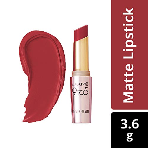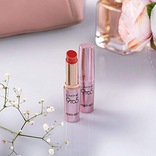 Lakmé 9to5 Primer with Matte is the first lip color with built-in primer for a long lasting, matte finish. The Built-in primer makes the color stay comfortably for 12 long hours. It also has a smooth application ensures an intense color payoff. so you can match your look with perfection. Lakmé 9to5 Primer with Matte gives a smooth and creamy finish which doesn’t make the lips crease. Moreover, you don’t require touch-ups for not 8 but 12 hours. The Key Primer Ingredient ensures that the lipstick gives a smooth finishs and feels extremely comfortable on your lips. Lakmé 9to5 Primer with Matte goes very well with Lakmé 9to5 Weightless Mousse Foundation as the base, followed by Lakmé 9to5 Flawless Compact. Then go ahead and apply, Starting from the centre of the upper lip, in your cupid’s bow, follow your lip line and fill color evenly all over the upper and lower lips. Pro Tip: For a precision pro-matte finish, line your lips with the Lakmé 9to5 Lip Liner and follow it up with Lakmé 9to5 Primer with Matte Lipstick.