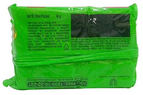 Vim bar removes the toughest grease stains the fastest and gives you a pleasant cleaning experience with its refreshing lemon fragrance. It has a unique patented plastic coating at the bottom of the bar which helps prevent it from sogging quickly making it last longer than ordinary bars.